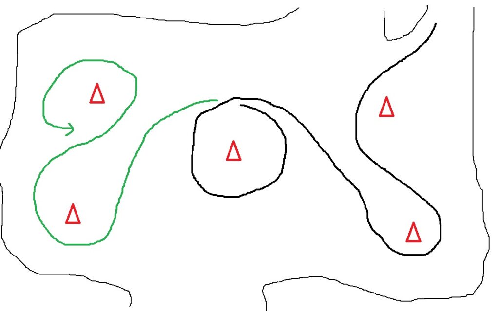 設置されているパイロンをジグザグに避けて、一番遠い二つのパイロンを大きく回り込んで、またジグザグに戻ってくる感じのコースとなっております。