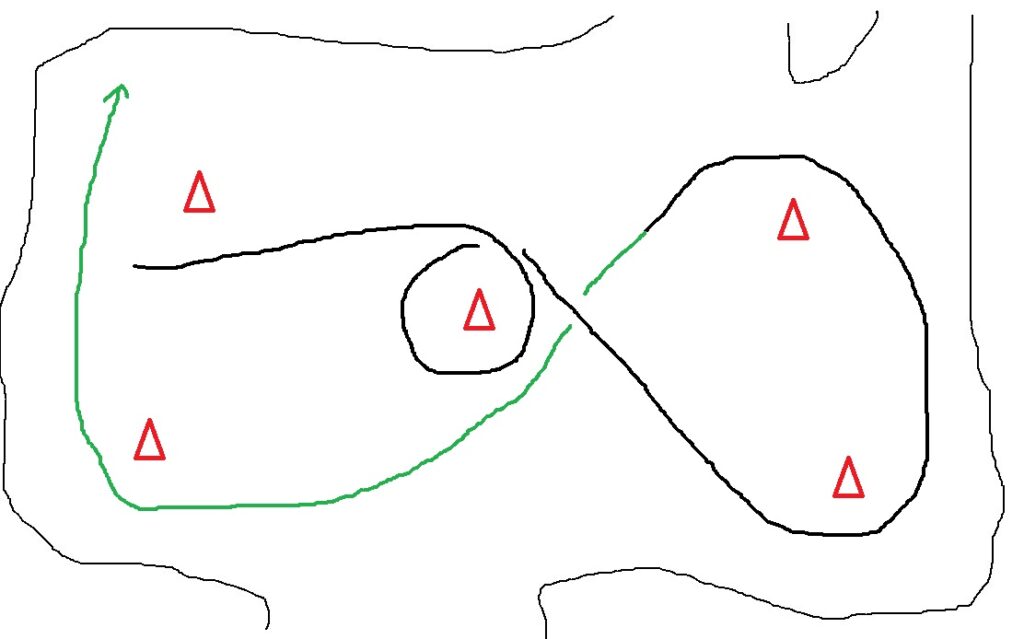 前半は「8の字」後半は「のの字」という、比較的覚えやすいコース。
