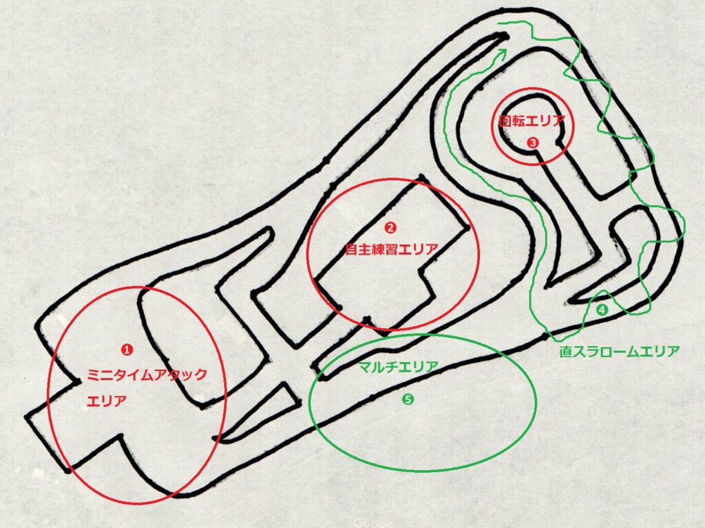 直スラロームエリアは残りますので、基本的な設定のもと、時計回りでお願いします。
