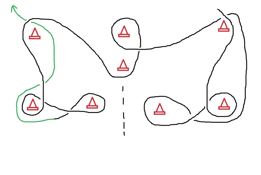 マルチエリアをスラローム走行して、直スラロームエリアを逆から回ってゴール。坂道を越えてスタート地点に戻ってきます。
